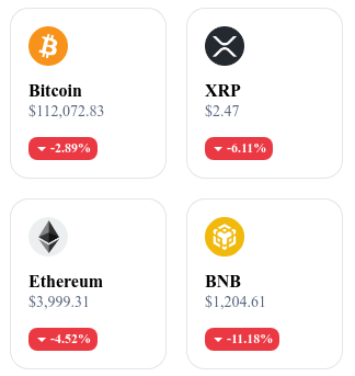 Alors que les tensions commerciales entre Washington et PĂ©kin reprennent de lâintensitĂ©, le marchĂ© des cryptomonnaies encaisse un nouveau coup dur. Le Bitcoin chute sous les 112âŻ000âŻ$, lâEthereum et le Dogecoin dĂ©crochent de 6âŻ%, emportĂ©s par une vague dâaversion au risque dĂ©clenchĂ©e par les reprĂ©sailles chinoises aux menaces tarifaires amĂ©ricaines.