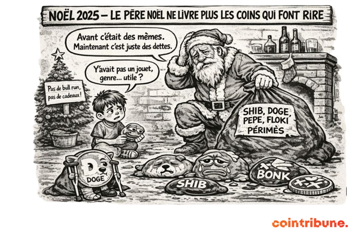 Si 2024 avait Ă©tĂ© marquĂ©e par une euphorie dĂ©bordante et des envolĂ©es spectaculaires, lâannĂ©e 2025 se termine sur une note beaucoup plus sobre pour les actifs basĂ©s sur la spĂ©culation pure. On fait le point sur ce âNoĂ«l de la gueule de boisâ pour le secteur des memecoins.
